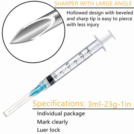 50 Pack 3ml/cc Plastic Syringe with 23Ga, Lab Sample Injection Syringes
