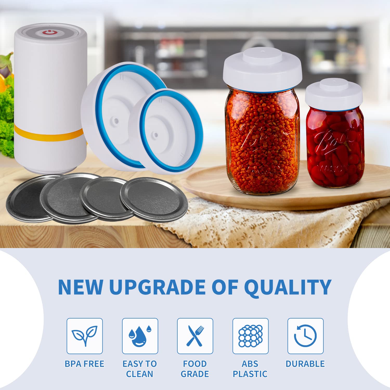 Our vacuum sealer for mason jars is made of premium plastic, which is BPA-free, without any chemicals, food-safe, durable to use, and dishwasher safe.