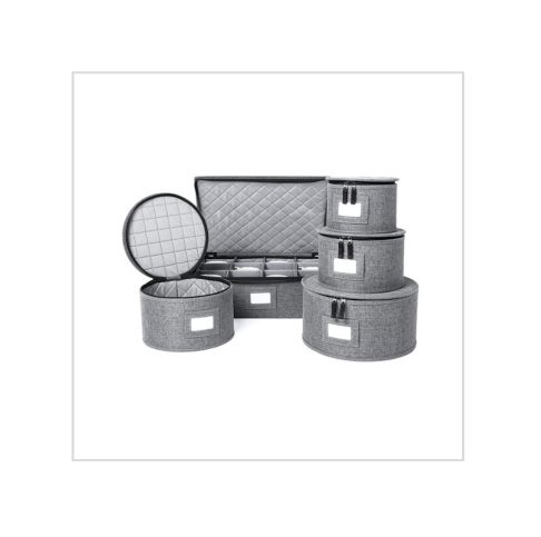 Stack full containers with confidence! Hard bottom and top lid with sturdy sides. Padded and quilted inside. Rest assured your china is protected throughout the year, and ready to shine for special occasions.49.99