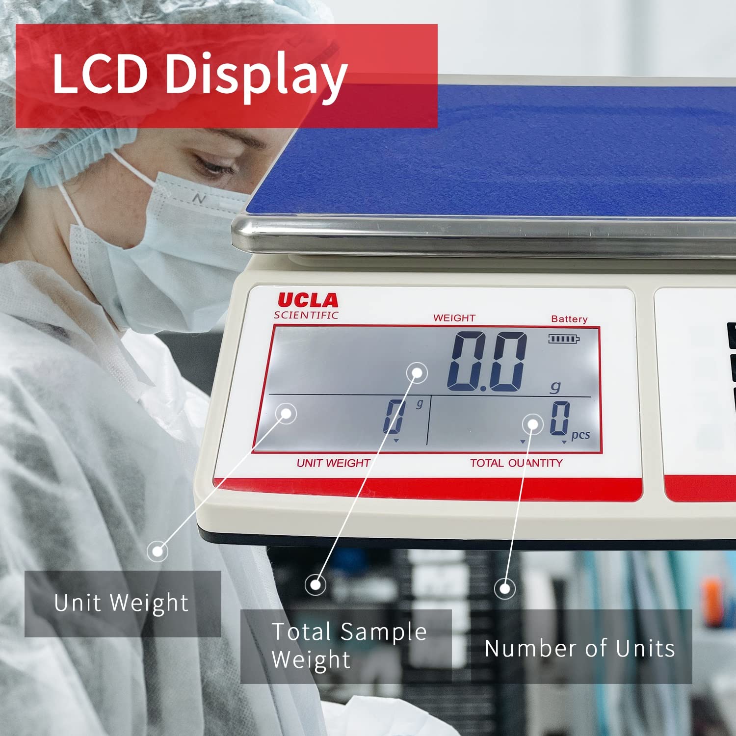 • *Clear Large LCD Screen: The digital scale has three display windows for weighing, unit weighing and counting functions. It was with bright white backlight for clear reading so to greatly save your time and improves efficiency.